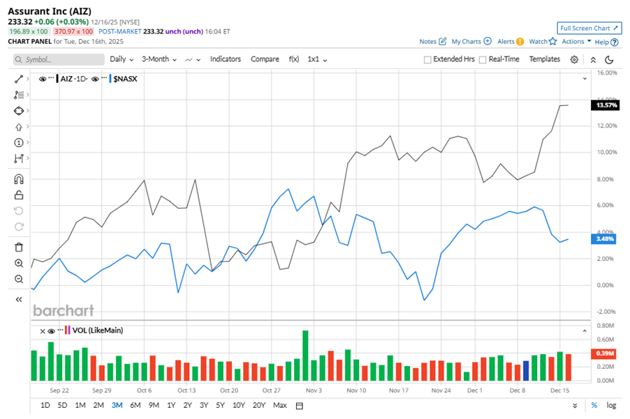 Despite its notable strength, AIZ shares touched their 52-week high of $236.74 in the last trading session. Over the past three months, AIZ stock has gained 13.6%, outperforming the Nasdaq Composite’s ($NASX) 3.5% gains during the same time frame.
