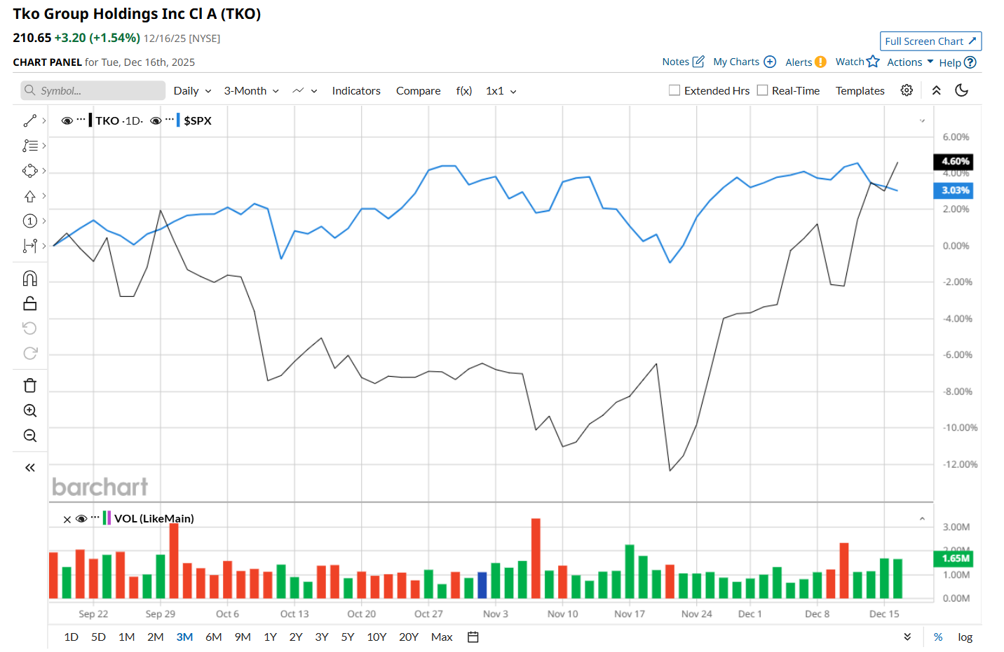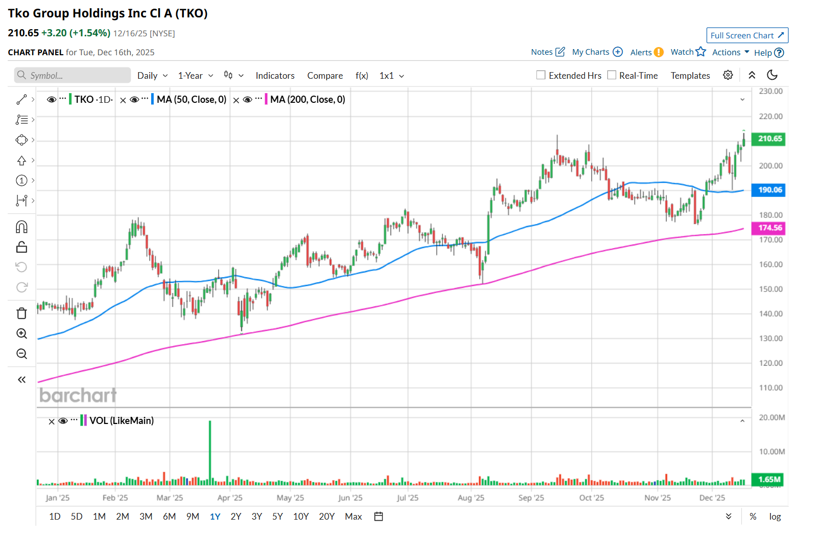 To confirm its bullish trend, TKO has been trading above its 200-day moving average over the past year, and has remained above its 50-day moving average since late November.