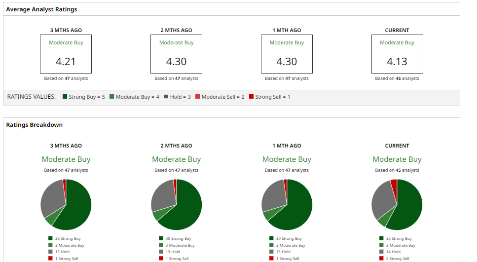 Overall, NFLX holds a consensus “Moderate Buy” rating from the 45 analysts covering the stock. The average 12-month price target set by the group is $129.37, which implies an expected 34% upside potential.