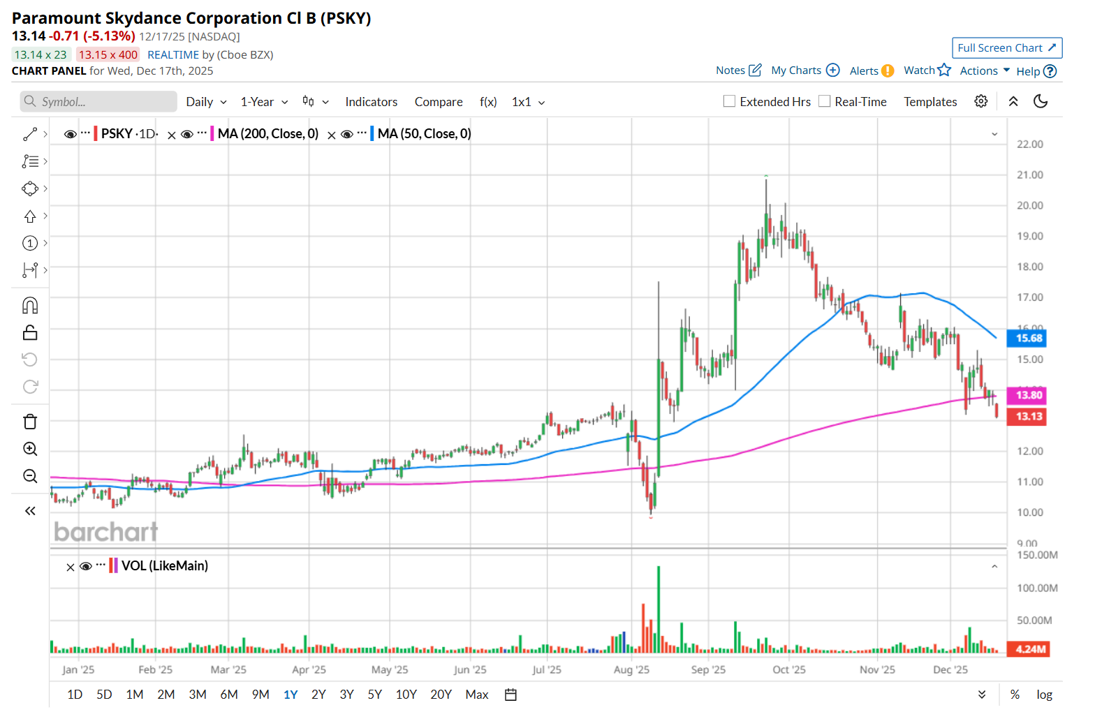 On Dec. 16, shares of PSKY fell 1% after several analysts issued “Sell” ratings citing concerns over the company’s valuation following its hostile bid for Warner Bros. Discovery, Inc. (WBD). Wall Street remains skeptical about the richness of the offer and the potential strain on PSKY’s balance sheet, which is already weighed down by elevated debt levels.