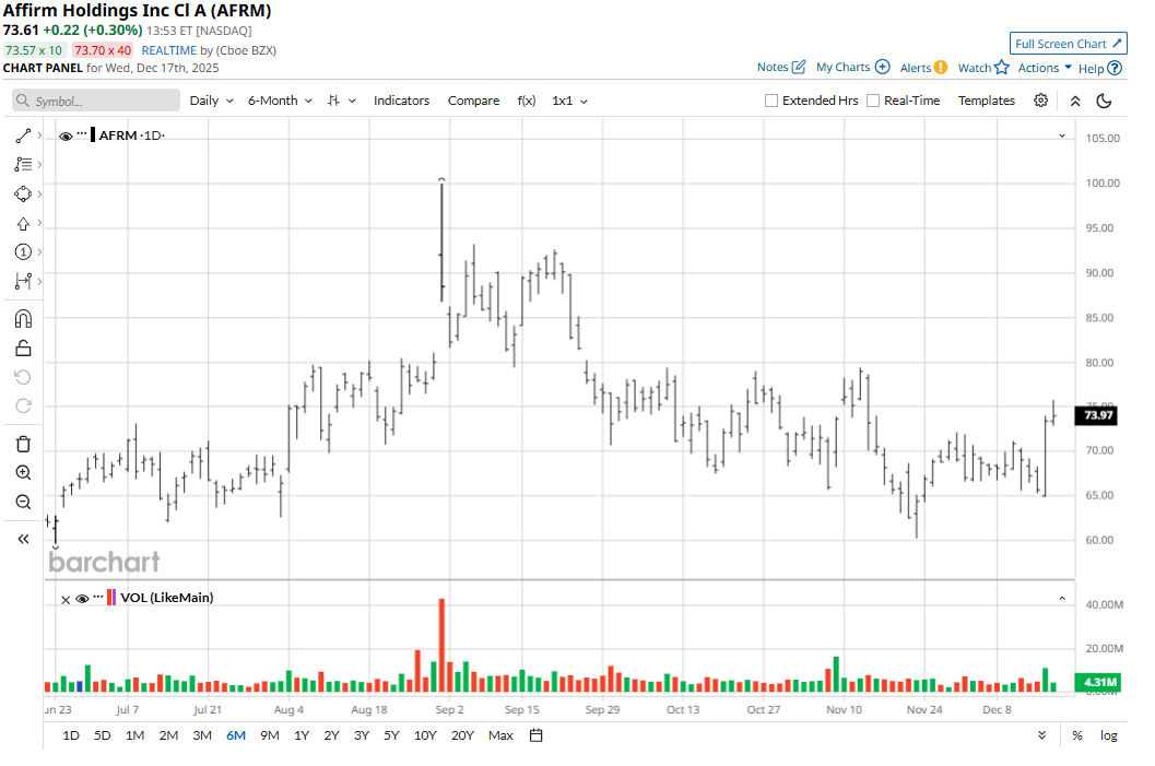 Despite the rally, Affirm stock is down some 20% versus its year-to-date high set in August.