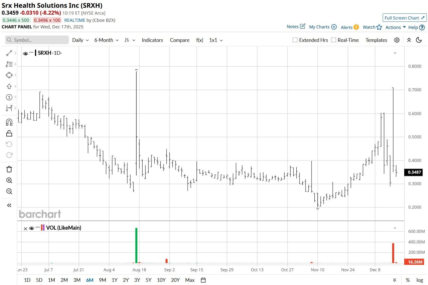 Following the initial surge, SRXH stock reversed nearly all of its intraday gains by market close on Dec. 16.Â