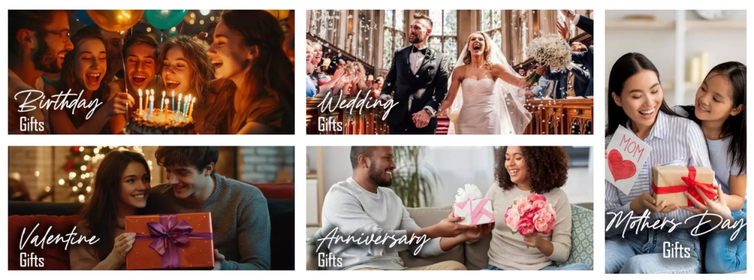 - A wide catalog designed for all occasions, including birthdays, holidays, promotions, corporate events, and seasonal gifting
