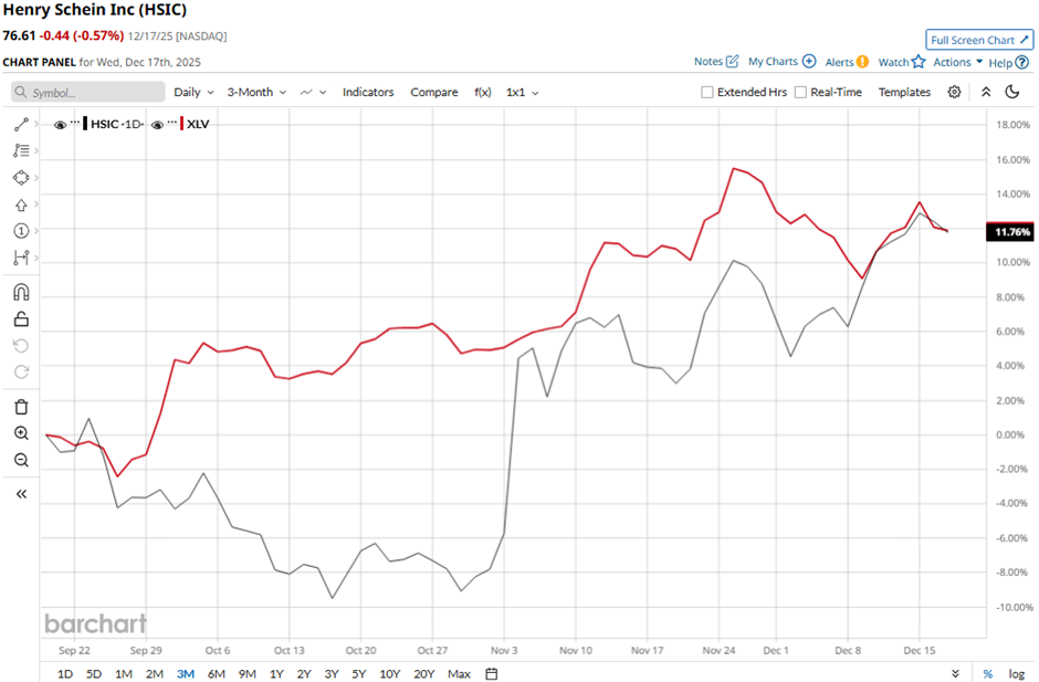 Shares of the Melville, New York-based company have decreased 7.1% from its 52-week high of $82.49. HSIC stock has soared 13.7% over the past three months, slightly outpacing the Health Care Select Sector SPDR Fund’s (XLV) 12.1% gain over the same time frame.