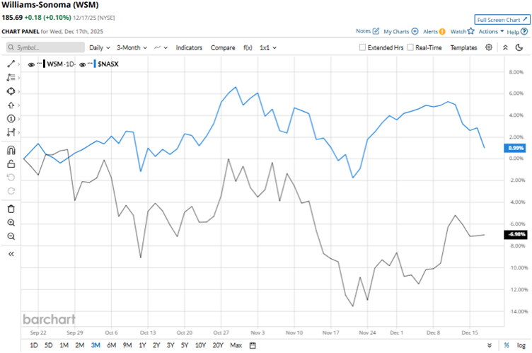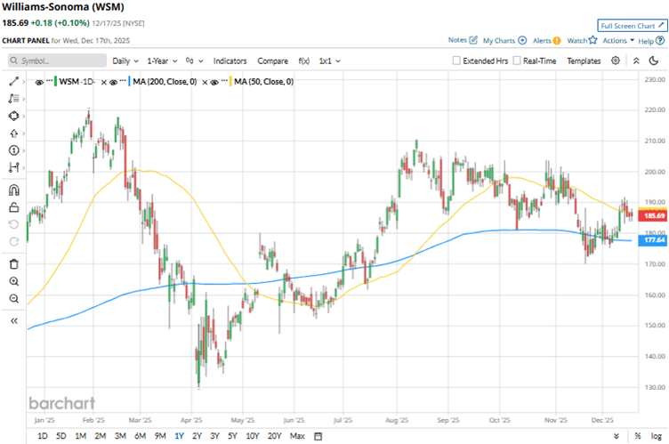 Over the past 52 weeks, Williams-Sonoma’s stock has dropped 6.3%, while the Nasdaq Composite index is up 12.9% over the same period. However, over the past six months, the stock has gained 18.3%, while the broader index has increased by 16.3%. The stock has been trading above its 200-day moving average since early December and is currently near its 50-day moving average.