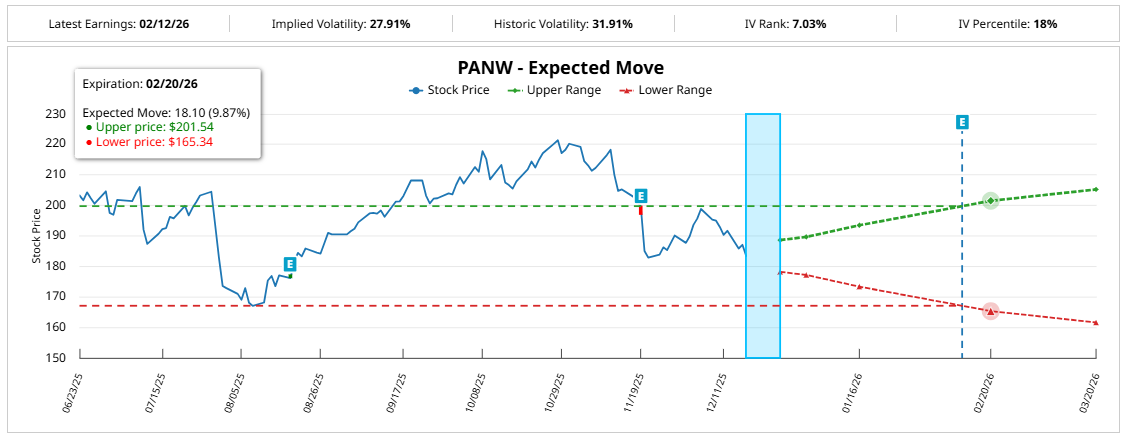 What’s also intriguing is Barchart’s Expected Move calculator. Based on the latest implied volatility (IV) data — which is a residual value stemming from actual option flows — the price range is forecasted to land between $165.35 and $201.54 for the Feb. 20, 2026 expiration date.