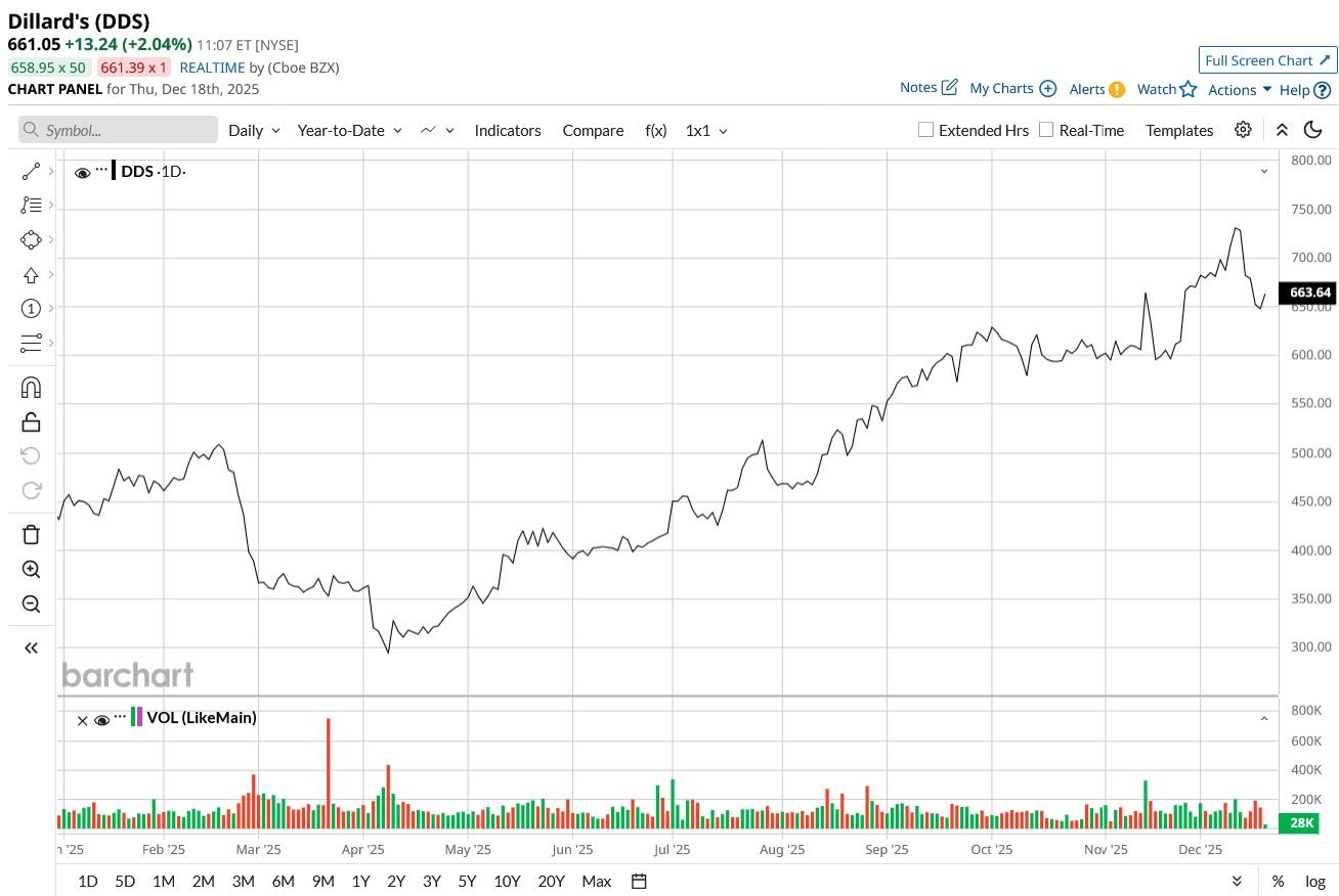 Founded in 1938 and based out of Arkansas, Dillard's operates full-line department stores and clearance centers across the U.S., primarily in the Southeast, Southwest, West, and Midwest. Other than retail operations, the company is also engaged in providing construction services. It operates approximately 272 full-line department stores plus around 28 clearance centers across 30 U.S. states and over 140 cities as of late 2025.