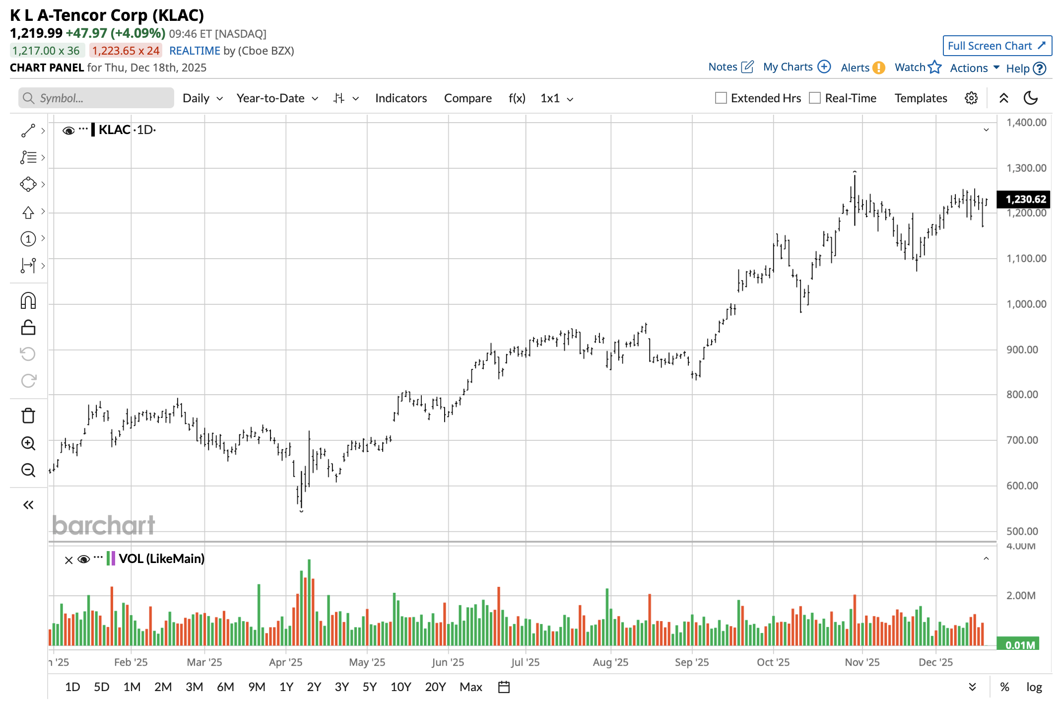 KLAC stock's movement has been positive, breaking past the $1,220 level and rising close to the upper part of the 52-week range. Although the majority of the story regarding AI innovation surrounds GPUs and custom silicon, analysts are pointing to the not-so-visible but crucial firms propelling the innovation of chips. KLA Corporation fits the bill nearly to perfection.