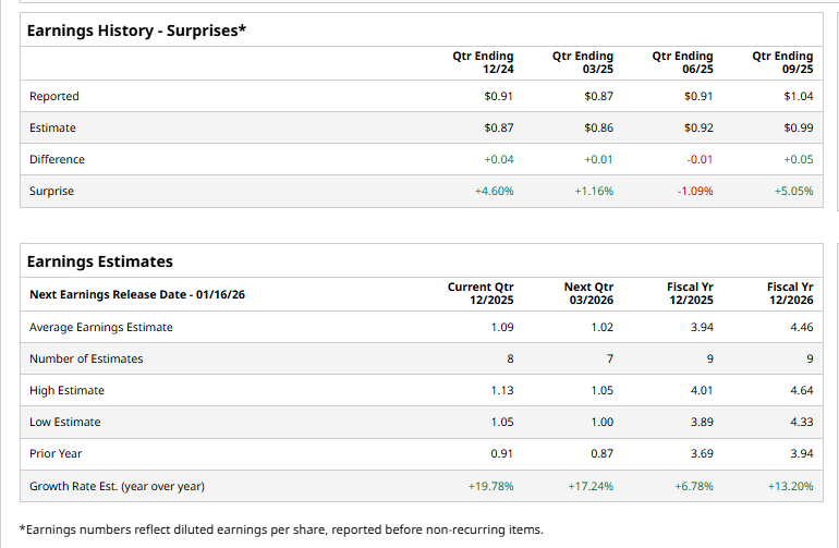 Before this event, analysts expect this bank to report a profit of $1.09 per share, up 19.8% from $0.91 per share in the year-ago quarter. The company has topped Wall Street’s earnings estimates in three of the last four quarters, while missing on another occasion. Its earnings of $1.04 per share in the previous quarter surpassed the consensus estimate by 5.1%.