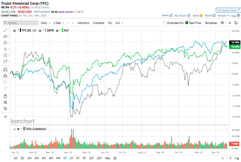 Shares of TFC have gained 15.8% over the past 52 weeks, slightly surpassing the S&P 500 Index's ($SPX) 15.4% rise and the Financial Select Sector SPDR Fund’s (XLF) 14.5% uptick over the same time frame.