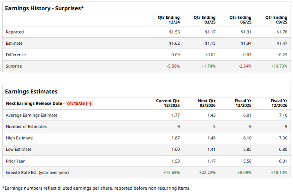 The Lowell, Arkansas-based company is set to unveil its fiscal Q4 2025 results soon. Prior to the event, analysts anticipate JBHT to report a profit of $1.77 per share, up 15.7% from $1.53 per share in the year-ago quarter. It has exceeded Wall Street's bottom-line estimates in two of the past four quarters while missing on two other occasions.