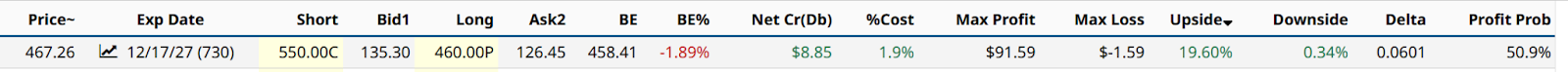 And as I see it, if the stock, which I’m daring to go above $550 during that time, does so, I can just buy some more shares. Or rebalance the collar levels. 20% upside, and 0.3% downside over 2 years, on this stock? THAT is turning volatility into opportunity.