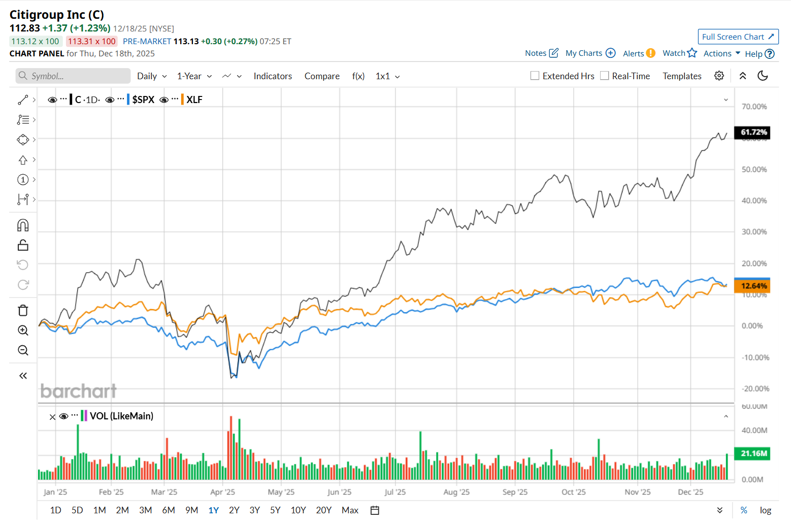 Citigroup has rallied 65.6% over the past 52 weeks, significantly outperforming both the S&P 500 Index's ($SPX) 15.4% return and the State Street Financial Select Sector SPDR ETF’s (XLF) 14.5% uptick over the same time period.