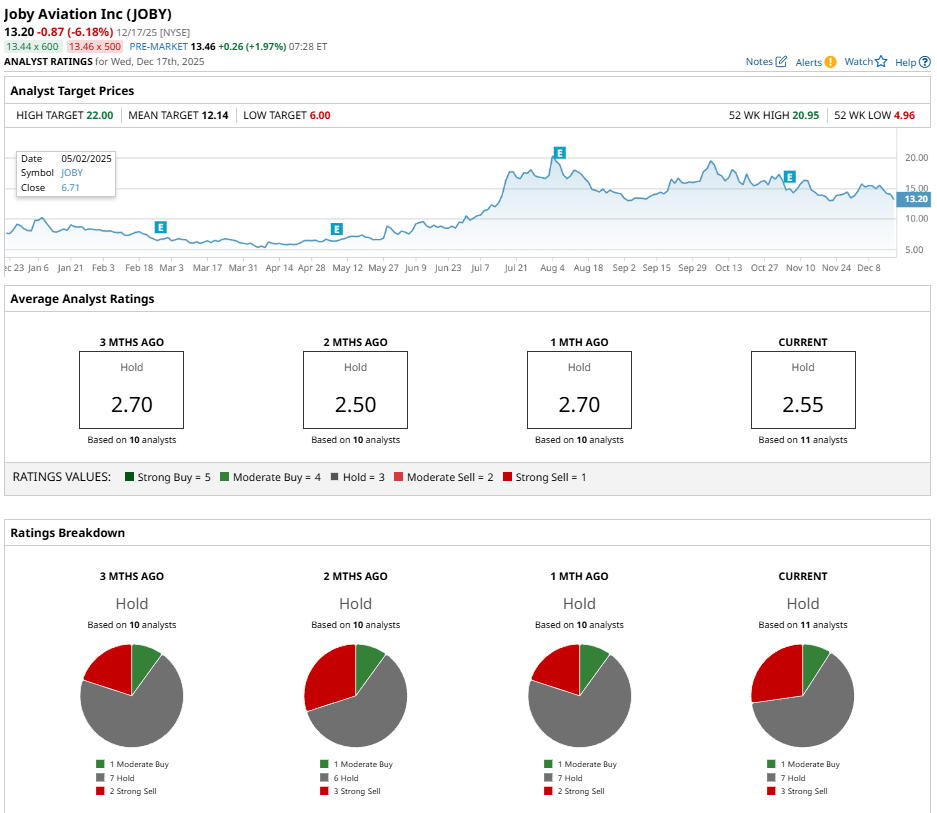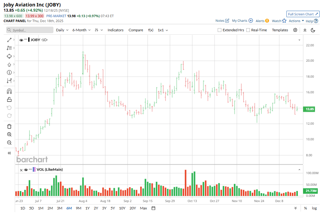 Following a run-up earlier in 2025, Joby Aviation trades well above its 52‑week low of $4.96 but below its high of $20.95. Over the last five days, the stock has declined by approximately 11%, and it is down about 5% over the past three months, as profit-taking and a discounted equity offering have weighed on sentiment.