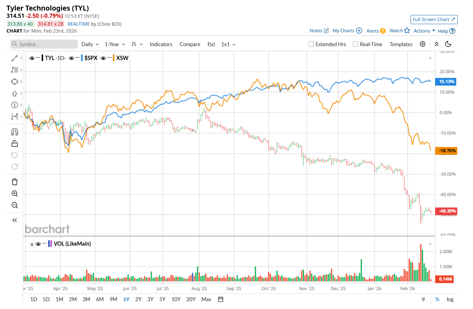 Narrowing the focus, TYL has also lagged the State Street SPDR S&P Software & Services ETF (XSW), which decreased 21.5% over the past 52 weeks and 20.2% on a YTD basis.