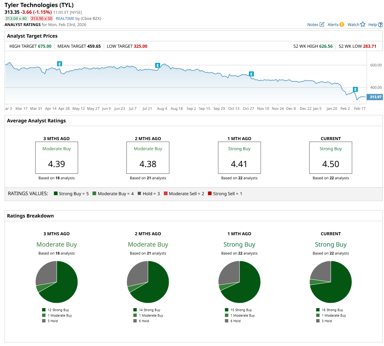 On Feb. 17, Peter Heckmann from D.A. Davidson maintained a “Buy" rating on TYL, with a price target of $460, indicating a 46.8% potential upside from the current levels.