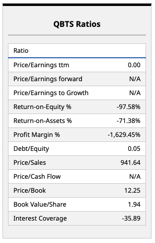 Looking at D-Wave's current fundamentals, there are several large negative numbers. This is a stock that's basically impossible to value on the basis of its past performance, as D-Wave and its competitors are all in a race to deploy capital most efficiently and effectively, to lay the groundwork for future growth.