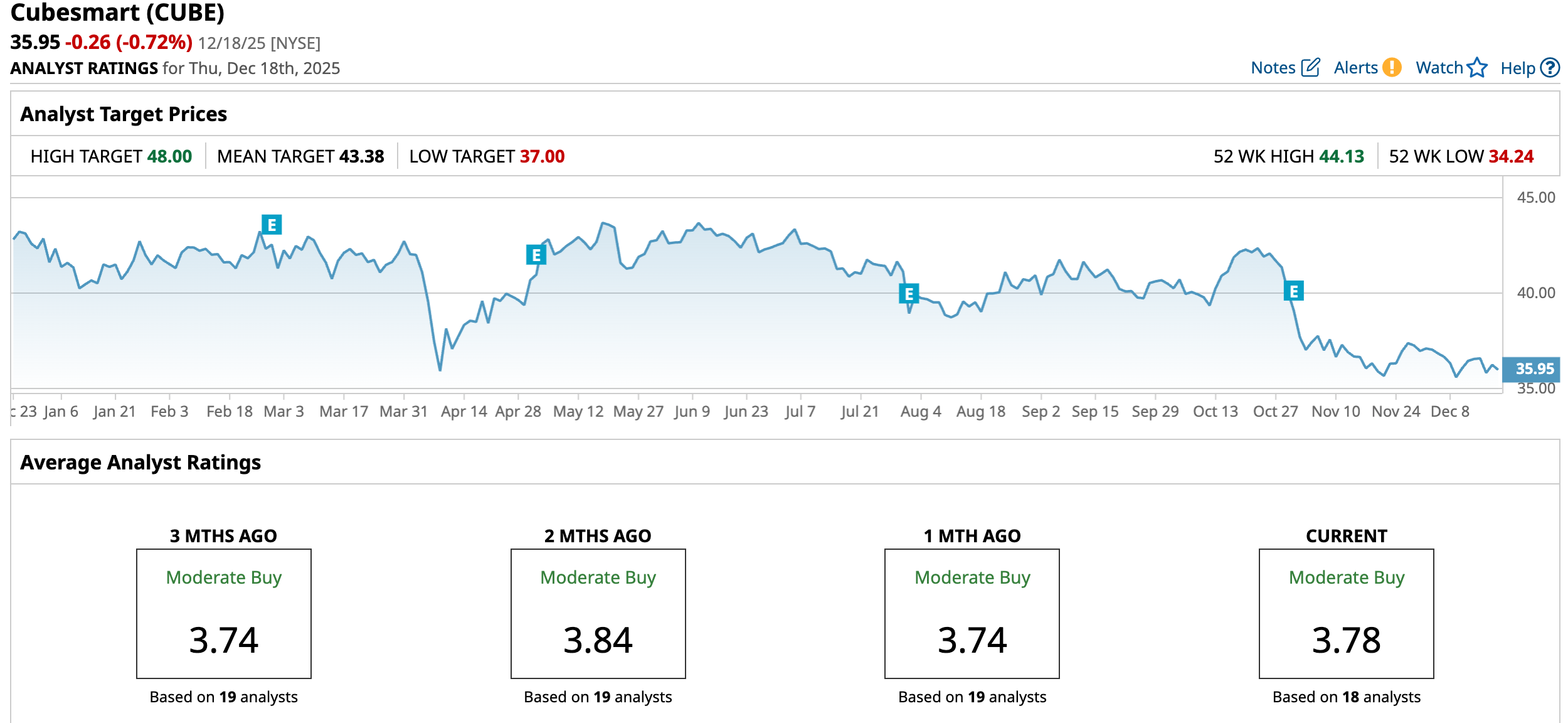 Earlier this month, RBC Capital reiterated an “Outperform” rating on CubeSmart and set a $46 price target, while naming the self-storage REIT its “top idea for 2026.” The firm highlights CubeSmart’s urban-focused portfolio, particularly its strong New York City exposure as a key advantage, given favorable supply-demand dynamics and limited housing mobility.