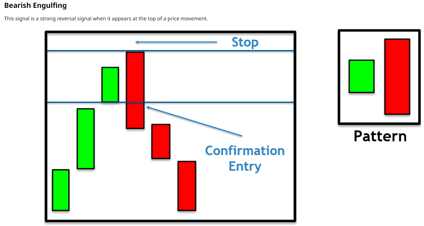 This pattern doesn’t automatically mean something ominous is coming. However, candlestick theory suggests that when a bearish engulfing candle forms, markets often see follow-through for the next 3–5 candles.