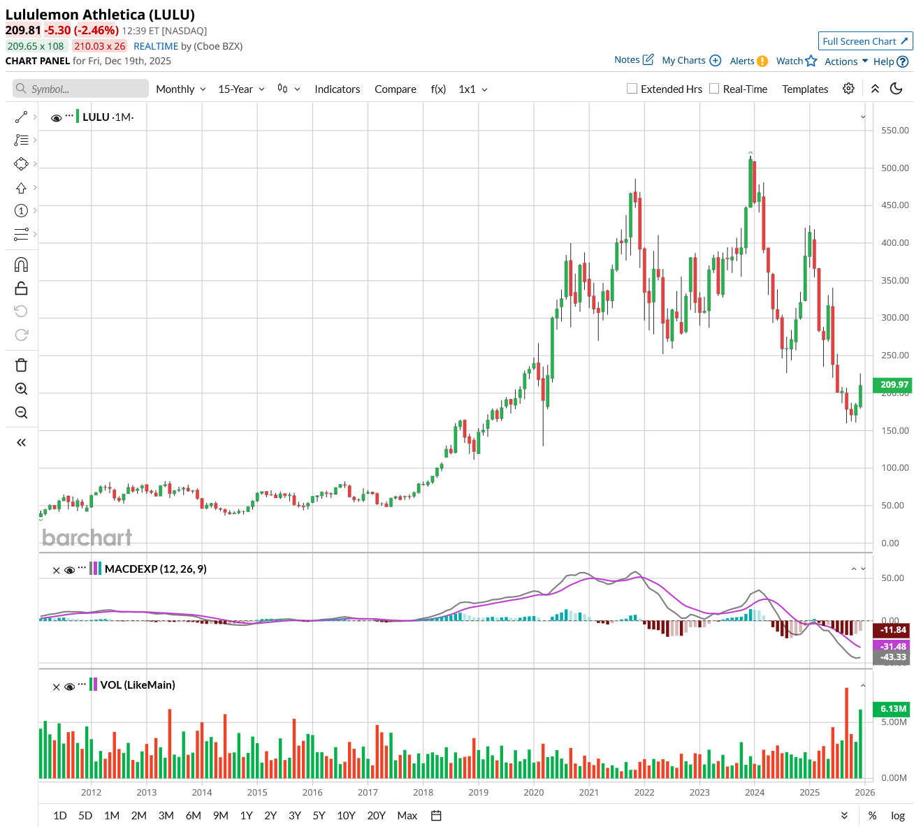 LULU stock surged around 10% last week following the news of McDonald's exit. Yesterday, it rose more than 3% after Elliott disclosed a $1 billion investment in the athleisure giant. Lululemon reported a 2% decline in its core market amid competition from startups including Vuori and Alo Yoga.