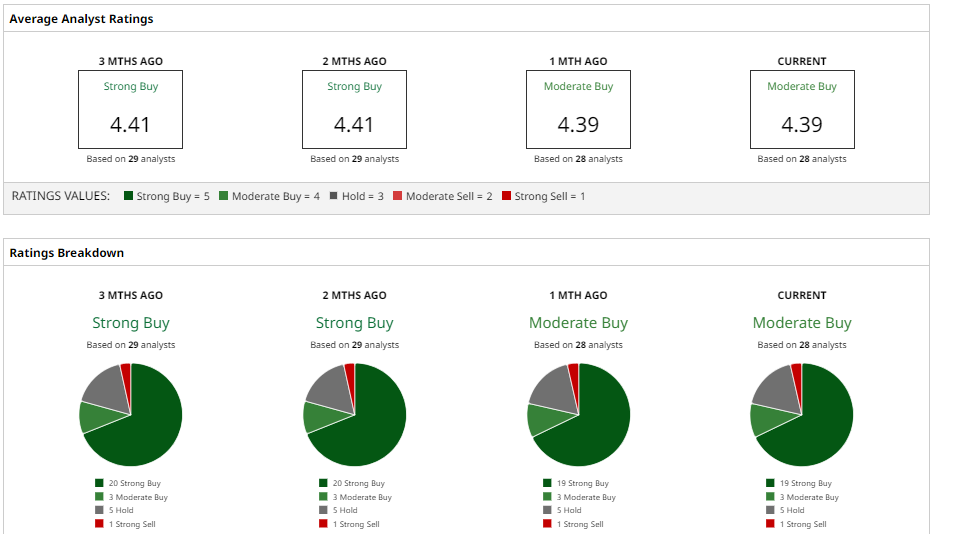 In aggregate, the consensus among 28 analysts is “Moderate Buy,” and the average price target sits at $829.62, which suggests around 24% upside potential from current levels.