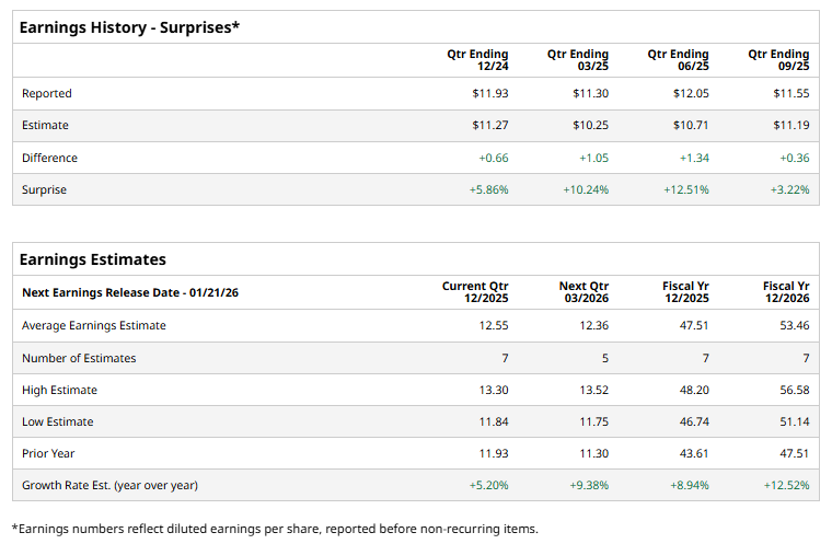 The asset management giant is expected to report its fourth-quarter results next month. Ahead of the event, analysts expect BLK to deliver an adjusted EPS of $12.55, up 5.2% from $11.93 reported in the year-ago quarter. The company has a solid earnings surprise history. It has surpassed the Street’s bottom-line estimates in each of the past four quarters.