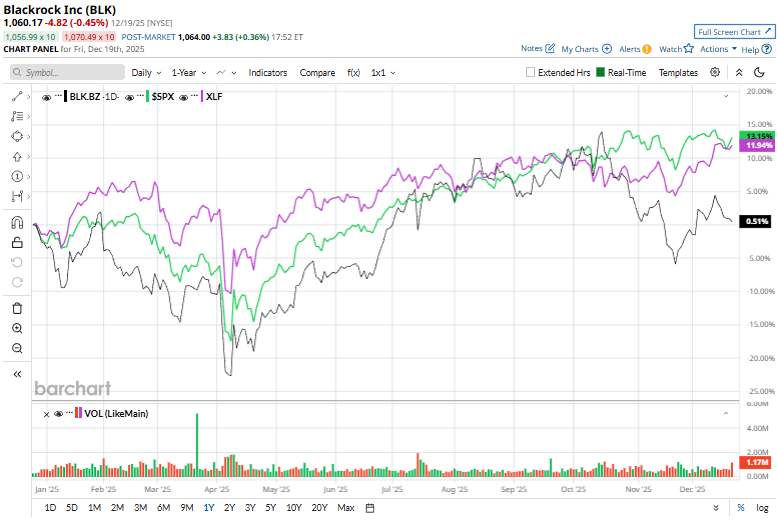 BlackRock’s stock prices have climbed 4.3% over the past 52 weeks, trailing the S&P 500 Index’s ($SPX) 16.5% gains and the Financial Select Sector SPDR Fund’s (XLF) 14.7% surge during the same time frame.