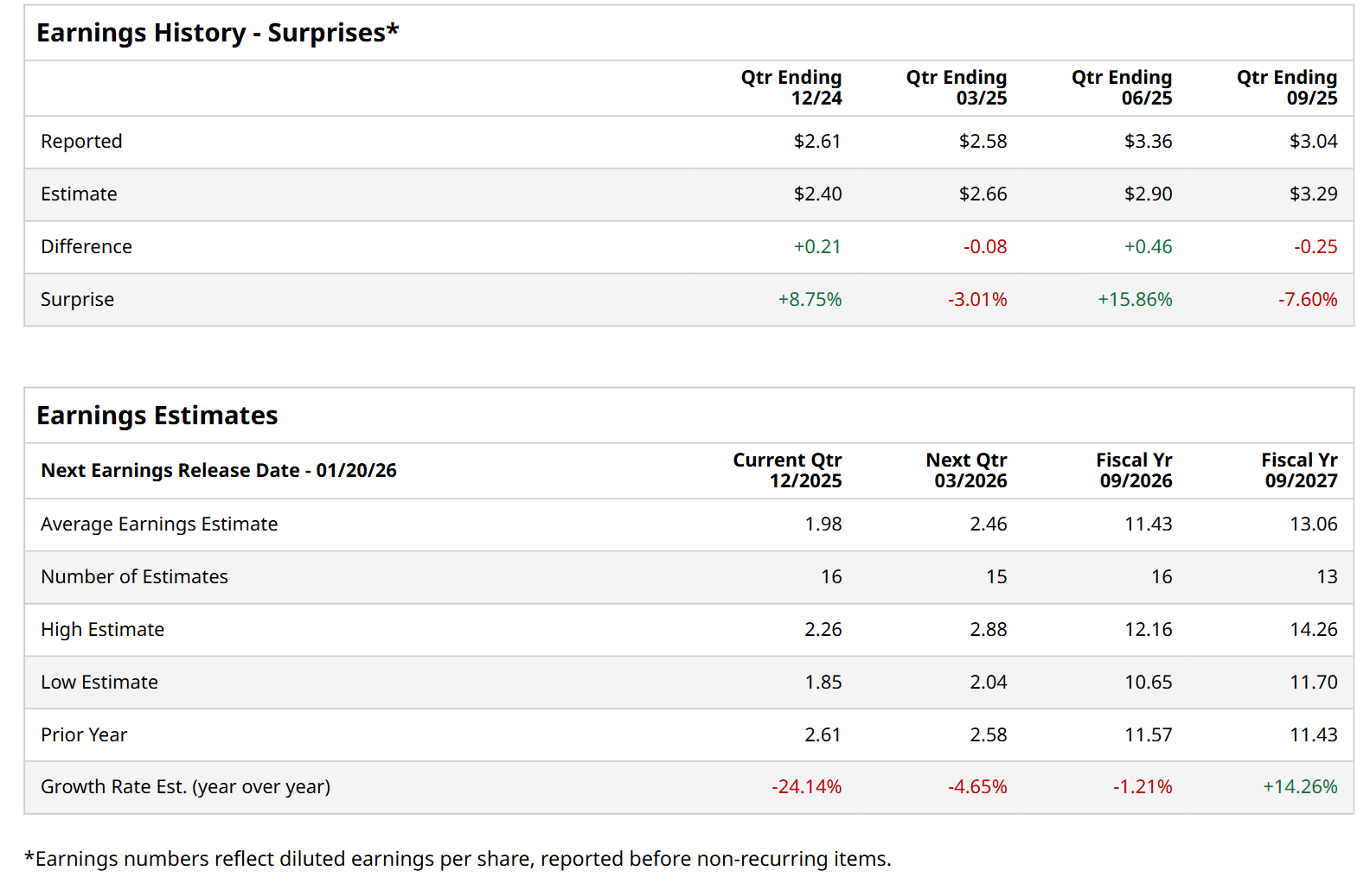 Valued at a market cap of $42.8 billion, D.R. Horton, Inc. (DHI) is a leading homebuilding company based in Arlington, Texas. It constructs a wide range of residential homes, including single-family detached homes, townhomes, and duplexes and also provides related services such as mortgage financing, title agency services, and residential lot development. It is scheduled to announce its fiscal Q1 earnings for 2026 before the market opens on Tuesday, Jan. 20.