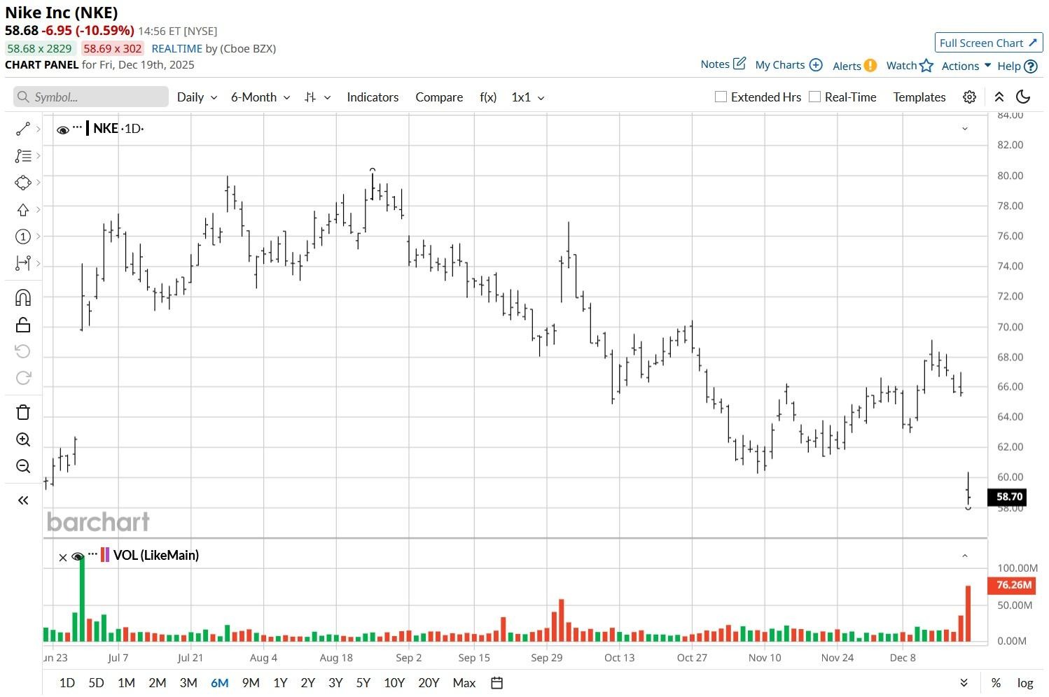 Nike (NKE) shares crashed over 10% on Dec. 19 after the footwear giant reported market-beating financials for its Q2 but issued disappointing guidance for the future.