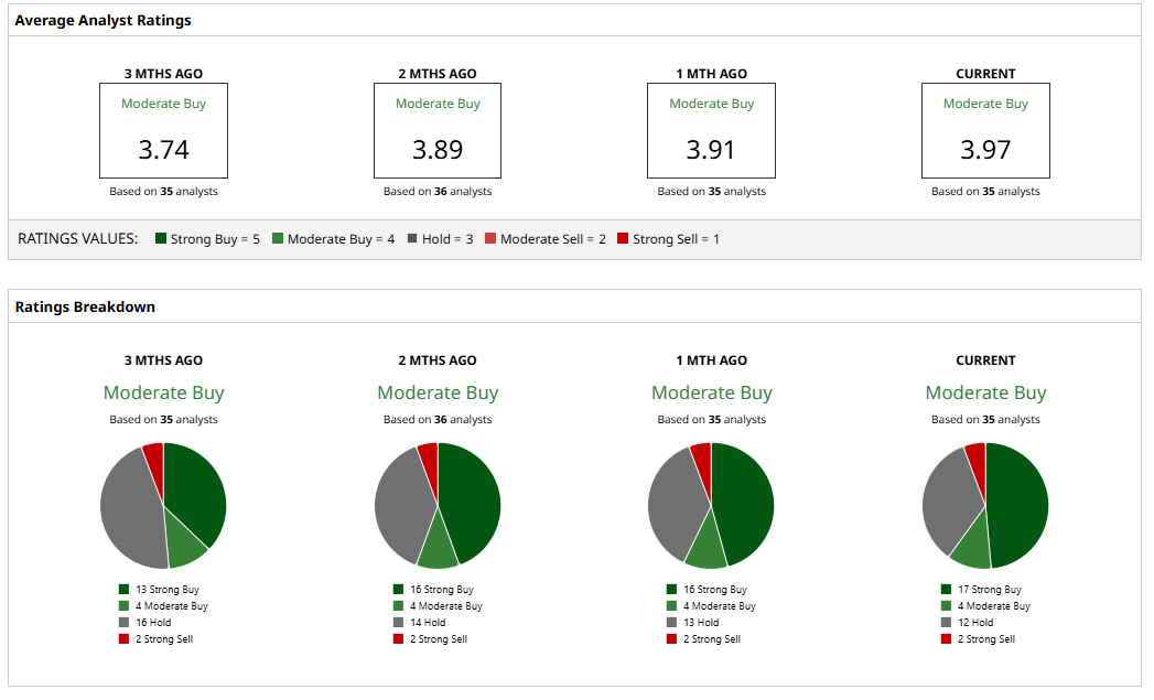 The consensus rating on NKE shares remains at “Moderate Buy” with the mean target of about $80 indicating potential upside of roughly 40% from here.