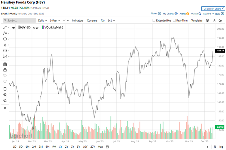 While Morgan Stanley analysts are bullish on Hershey, other Wall Street analysts have been lukewarm on the stock. Recently, analysts at Stifel Nicolaus reaffirmed a “Hold” rating while raising its price target to $195. This primarily reflects the effects of elevated cocoa prices and high tariff costs, which could affect Hershey’s profitability.