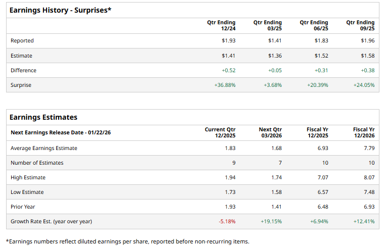 The med-tech titan is expected to announce its fiscal Q4 2025 results soon. Ahead of this event, analysts expect Intuitive Surgical to report an EPS of $1.83, down 5.2% from $1.93 in the year-ago quarter. It has exceeded Wall Street's earnings estimates in the last four quarters.
