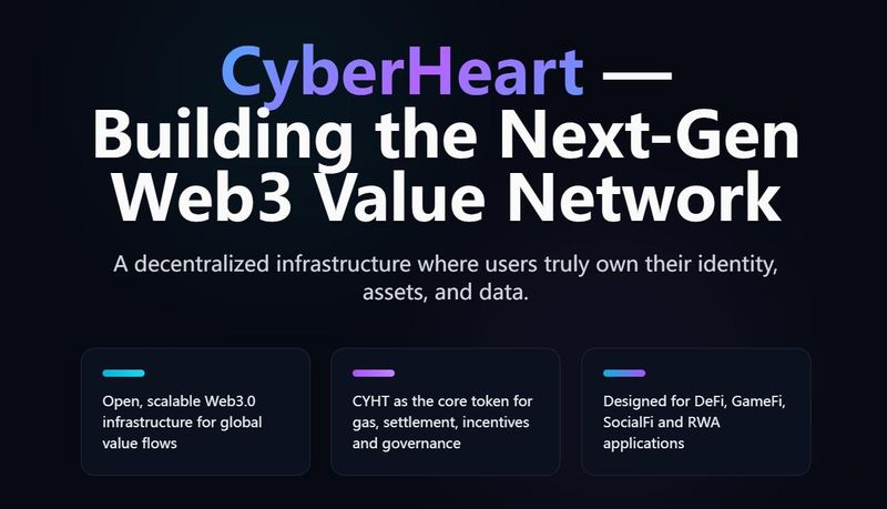 The CyberHeart project is designed to support a decentralized network for value exchange and application development within the Web3 ecosystem. The CYHT token functions as a utility asset within this network, facilitating governance participation, user incentives, and ecosystem transactions.