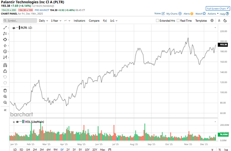 The stock has been trading higher as the company’s commercial operations continue to expand. Moreover, Palantir has been in the spotlight amid strong demand for AI. Over the past 52 weeks, the stock has gained 140.82%, and over the past six months, 41.28%. It had reached a 52-week high of $207.52 on Nov. 3, but is down 7% from that level.