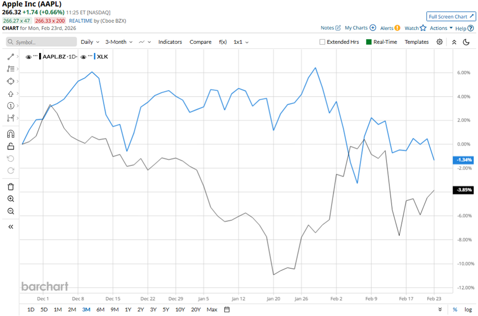 Shares of the Cupertino, California-based company have dipped 7.9% from its 52-week high of $288.62. Over the past three months, AAPL stock has decreased 1.7%, lagging behind the State Street Technology Select Sector SPDR ETF's (XLK) rise of 2% during the same period.