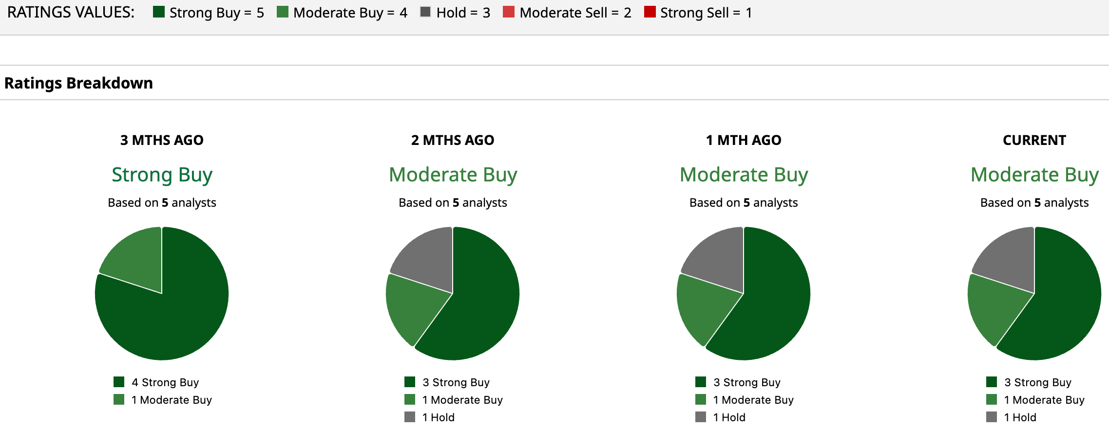 Although Adeia is not widely known on Wall Street, analysts hold a favorable view of its stock, assigning it a consensus “Moderate Buy” rating. Of the five analysts rating the stock, a majority of three analysts have given it a “Strong Buy” rating, one analyst rated it “Moderate Buy,” while one analyst gave a “Hold” rating. The consensus price target of $20.50 represents 20.7% upside from current levels. The Street-high Roth Capital-given price target of $27 indicates a 59% upside.