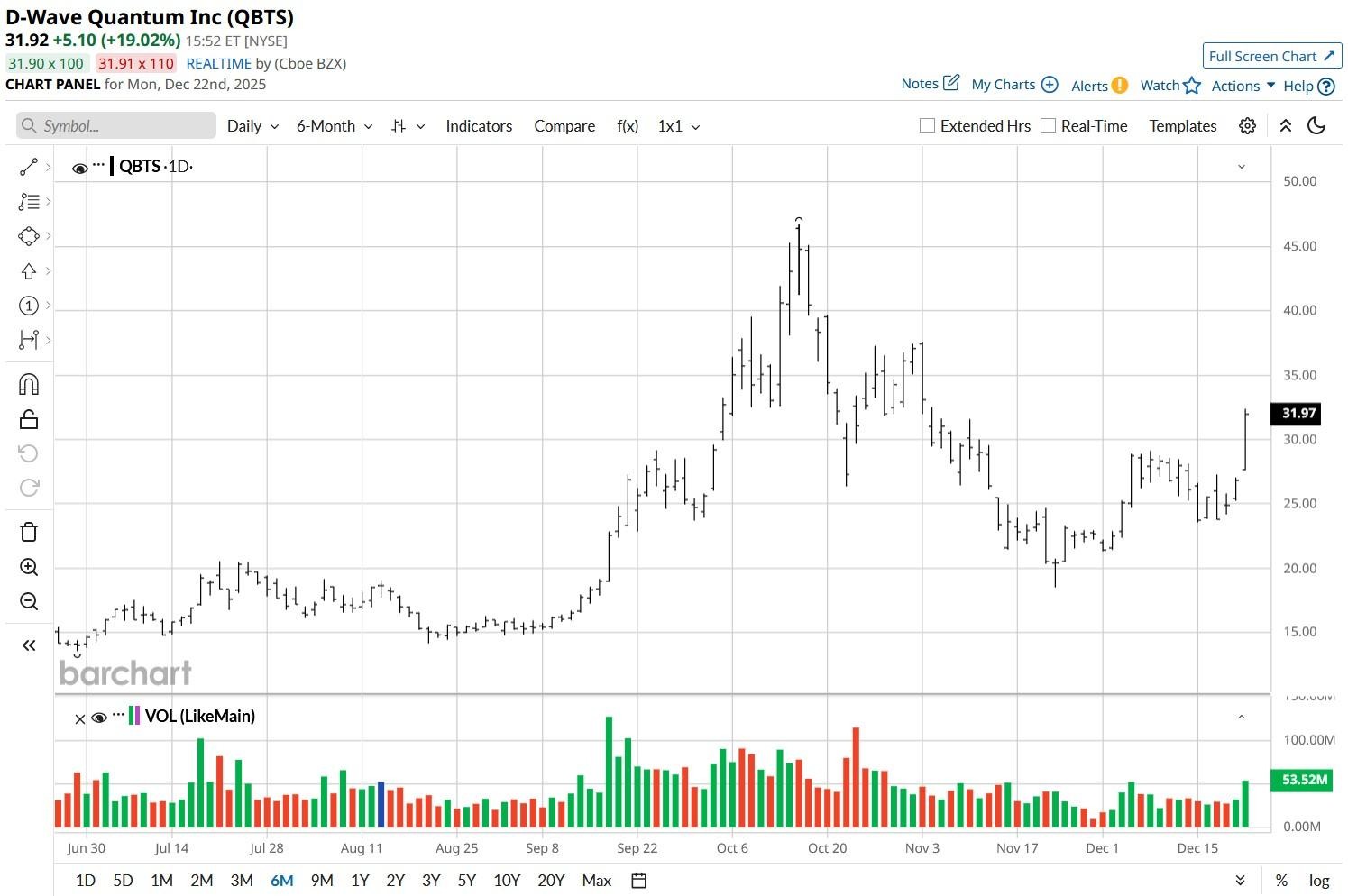 D-Wave (QBTS) shares rallied as much as 20% on Monday after the quantum computing company announced plans of participating in the CES 2026 scheduled for Jan. 7.