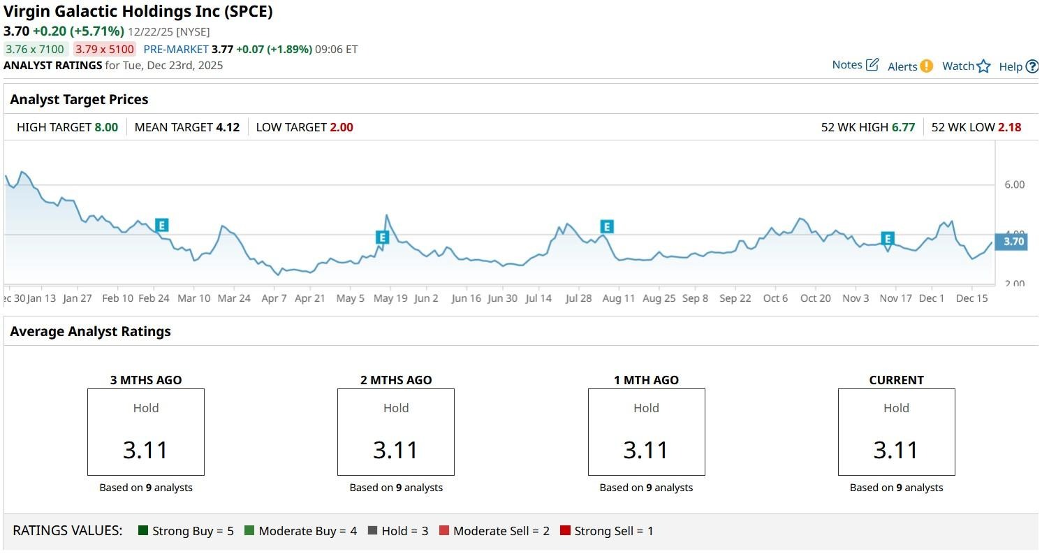 While the consensus rating on Virgin Galactic stock currently sits at “Hold” only, the mean target of about $4.12 indicates upside potential of another 17% from here.