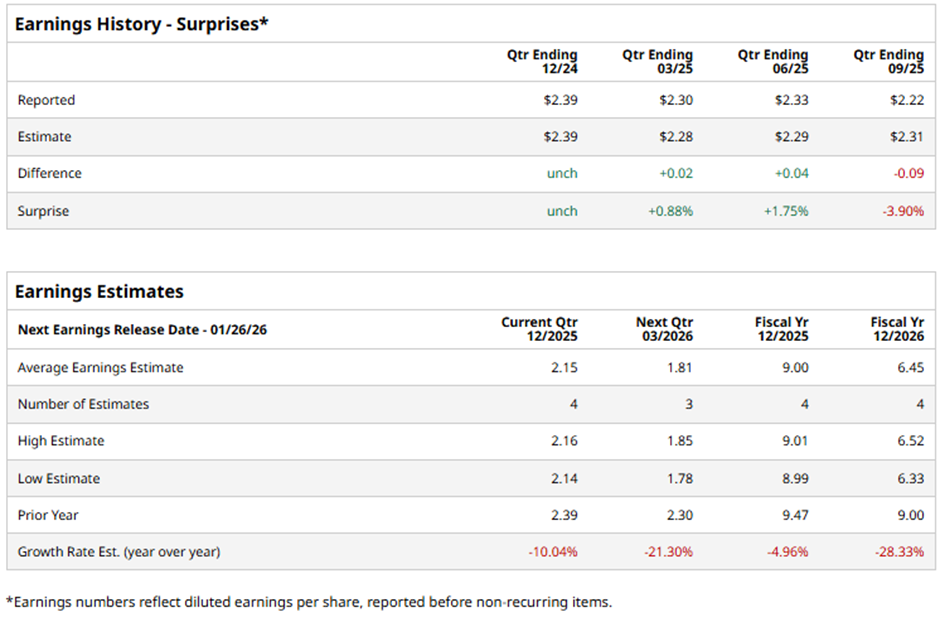 The Pasadena, California-based company is expected to release its fiscal Q4 2025 results after the market closes on Monday, Jan. 26. Ahead of this event, analysts project ARE to report an AFFO of $2.15 per share, reflecting a decrease of 10% from $2.39 per share in the year-ago quarter. It surpassed or met Wall Street's bottom-line estimates in three of the last four quarterly reports while missing on another occasion.