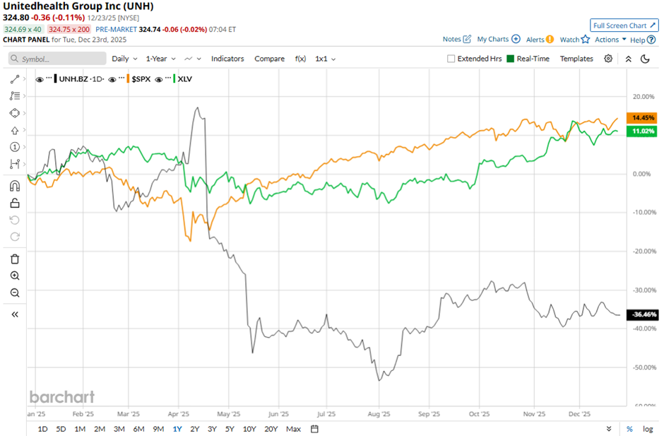 UNH stock has dipped 35.9% over the past 52 weeks, lagging behind the S&P 500 Index's ($SPX) 15.7% gain and the State Street Health Care Select Sector SPDR ETF's (XLV) 11.7% rise over the same period.