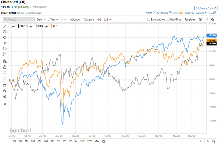 Chubb’s stock has been underperforming the broader market over the past year. Over the past 52 weeks, the stock has gained 13.8%, and over the past six months, it has been up 8.7%. On the other hand, the broader S&P 500 Index ($SPX) has increased by 15.7% and 14.7% over the same periods, respectively.
