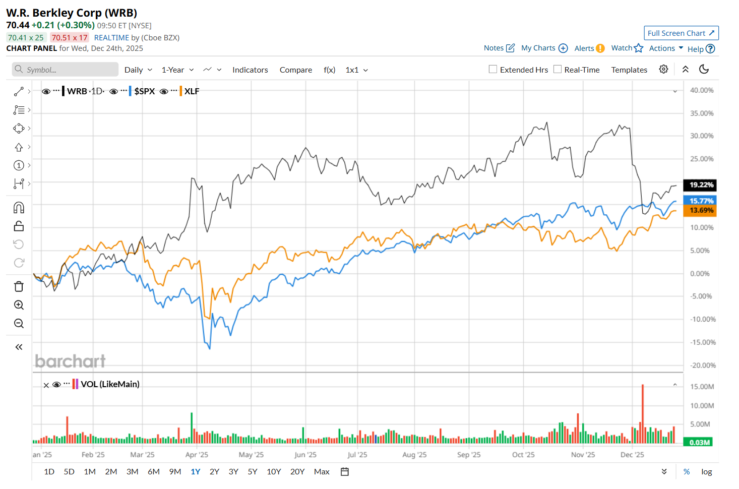 Shares of WRB have surged 19.7% over the past 52 weeks, outpacing both the S&P 500 Index's ($SPX) 14.4% return and the State Street Financial Select Sector SPDR ETF’s (XLF) 13.2% uptick over the same time period.