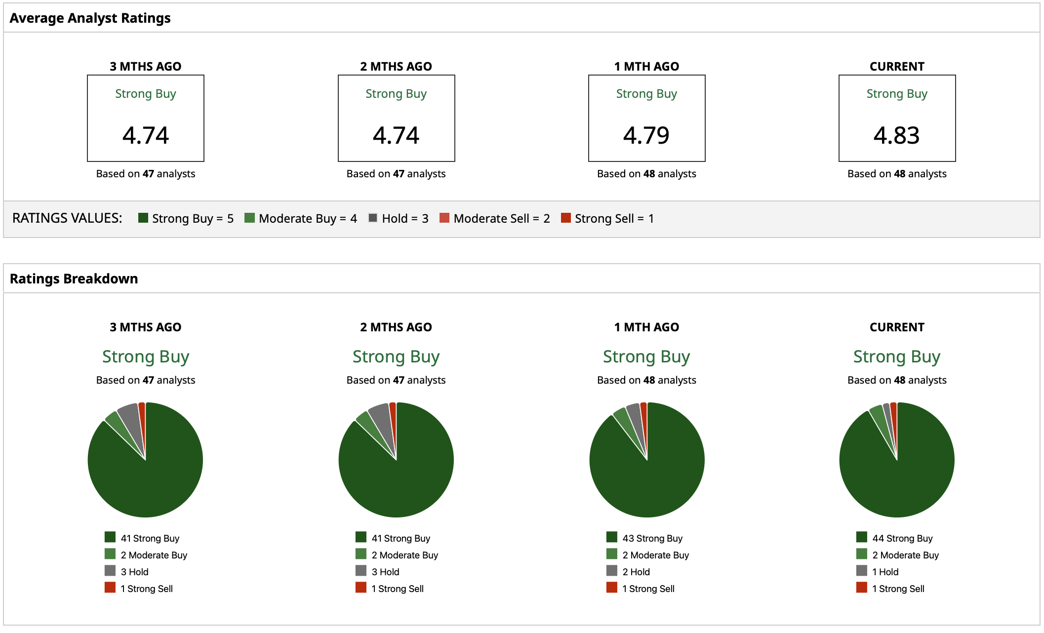 Within the previous 12 months, the NVDA stock has been very elusive yet upward-trending, fluctuating between a 52-week low of $86.62 and a high of $212.19. The stock is recently trending around $187, having surpassed the S&P 500 ($SPX) by over 40% within the previous year.