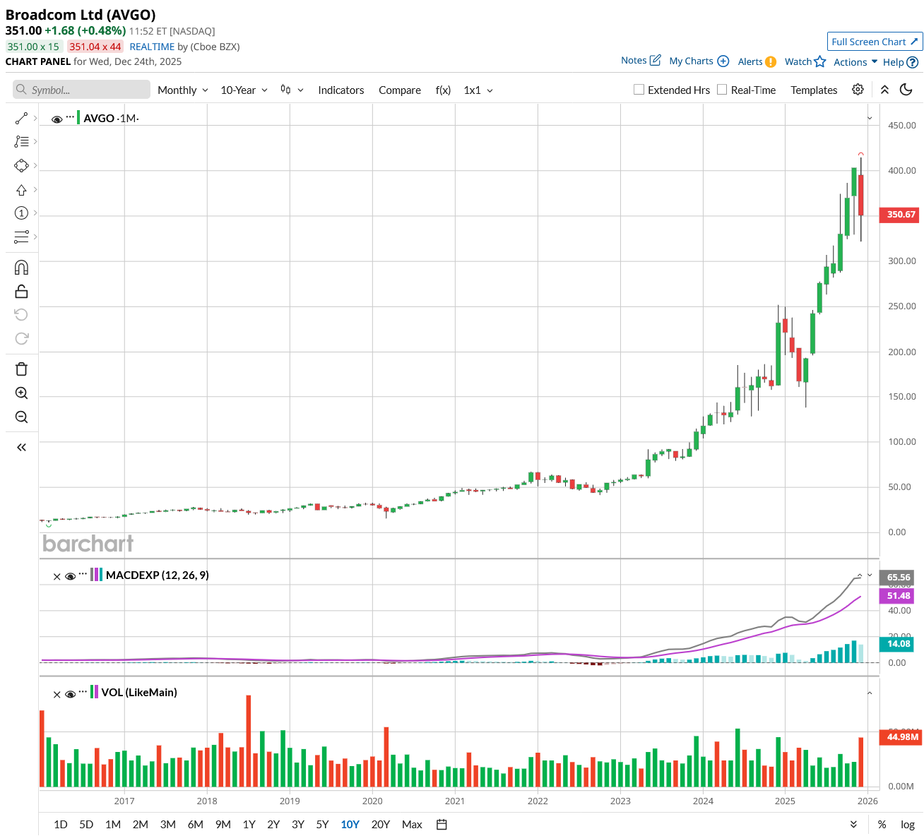 Yet shares initially climbed in after-hours trading before reversing course during the earnings call, ultimately plunging around 17% over two trading sessions. Valued at a market cap of $1.65 trillion, AVGO stock is down 18% below all-time highs.