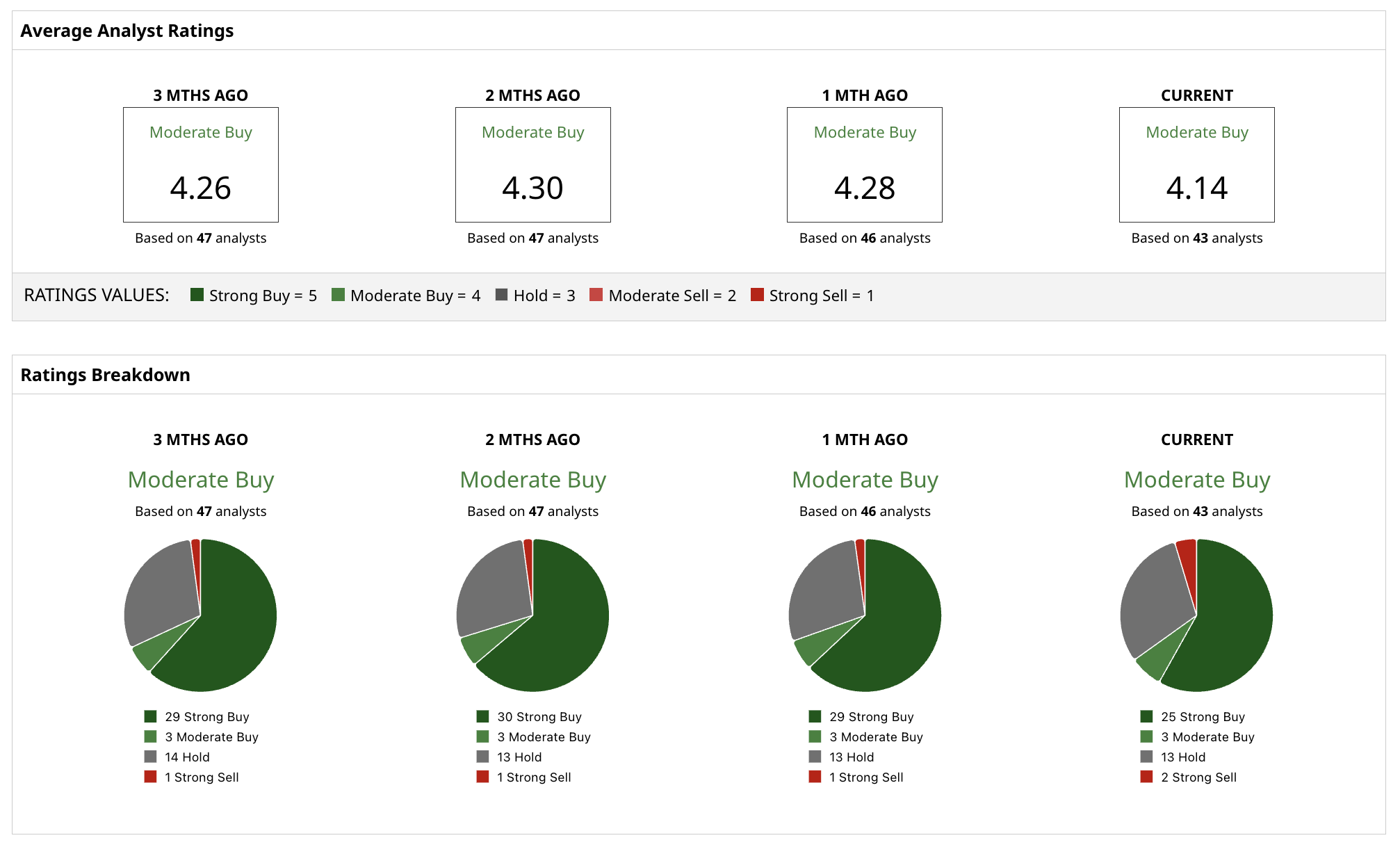 Wall Street maintains a generally positive stance on Netflix despite the deal. The consensus recommendation is a “Buy” or “Moderate Buy,” based on ratings from 43 analysts (e.g., 28 “Buy,” 13 “Hold,” and 2 “Sell”). The average 12-month price target is $128.99, with a high-end $152.50 per share and $92 on the low side.
