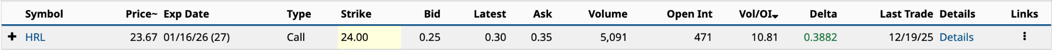 Betting on Hormel (HRL) is a bit of a Hail Mary. The shares are down nearly 24% year-to-date in 2025.