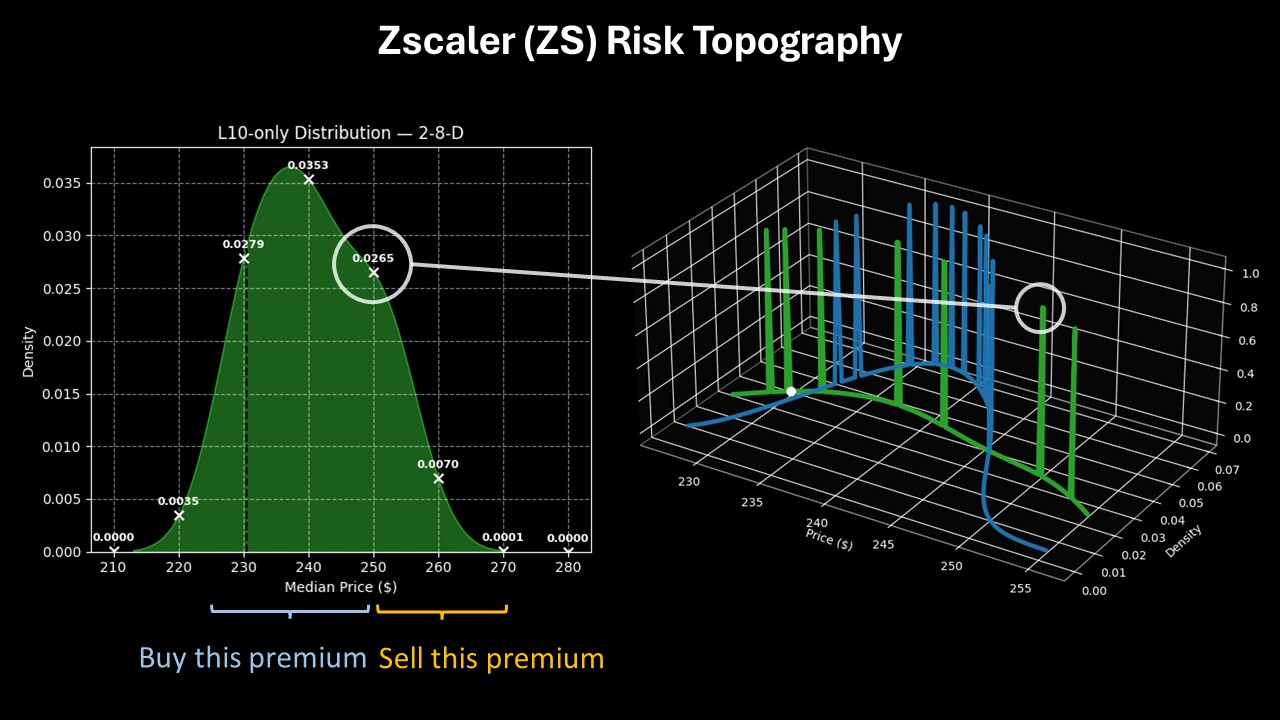 However, the current quant signal is the 2-8-D sequence. Under this sell-heavy sequence, the forward 10-week returns would likely range between $212 and $270, with price clustering predominant at around $238. Using risk topography, though, we can see heightened activity at $250, which provides an intriguing idea for a bullish trade.