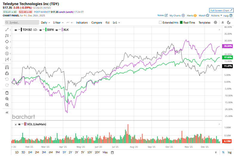 Shares of Teledyne Technologies have gained 8.6% over the past 52 weeks, trailing the broader S&P 500 Index's ($SPX) 14.8% return and the Technology Select Sector SPDR Fund's (XLK) 21.8% rise over the same period.