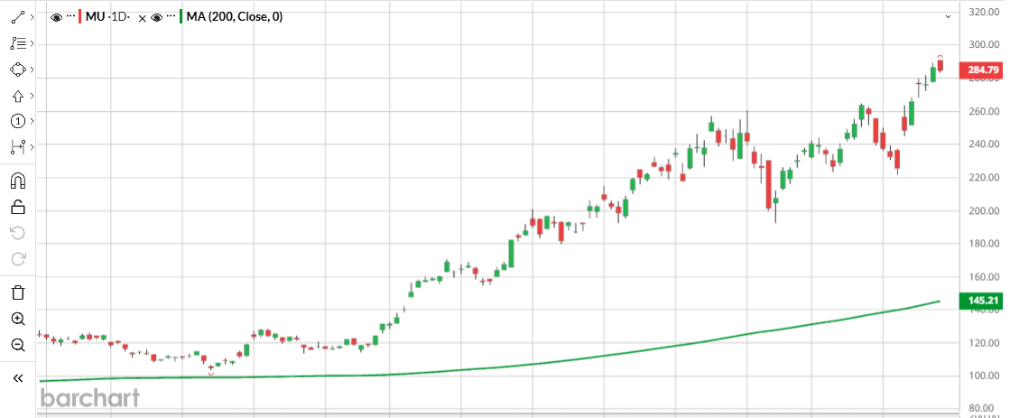 Micron Technology (MU) stock was a bearish candidate that came up on one of my screeners for being 96% above its 200-day moving average.