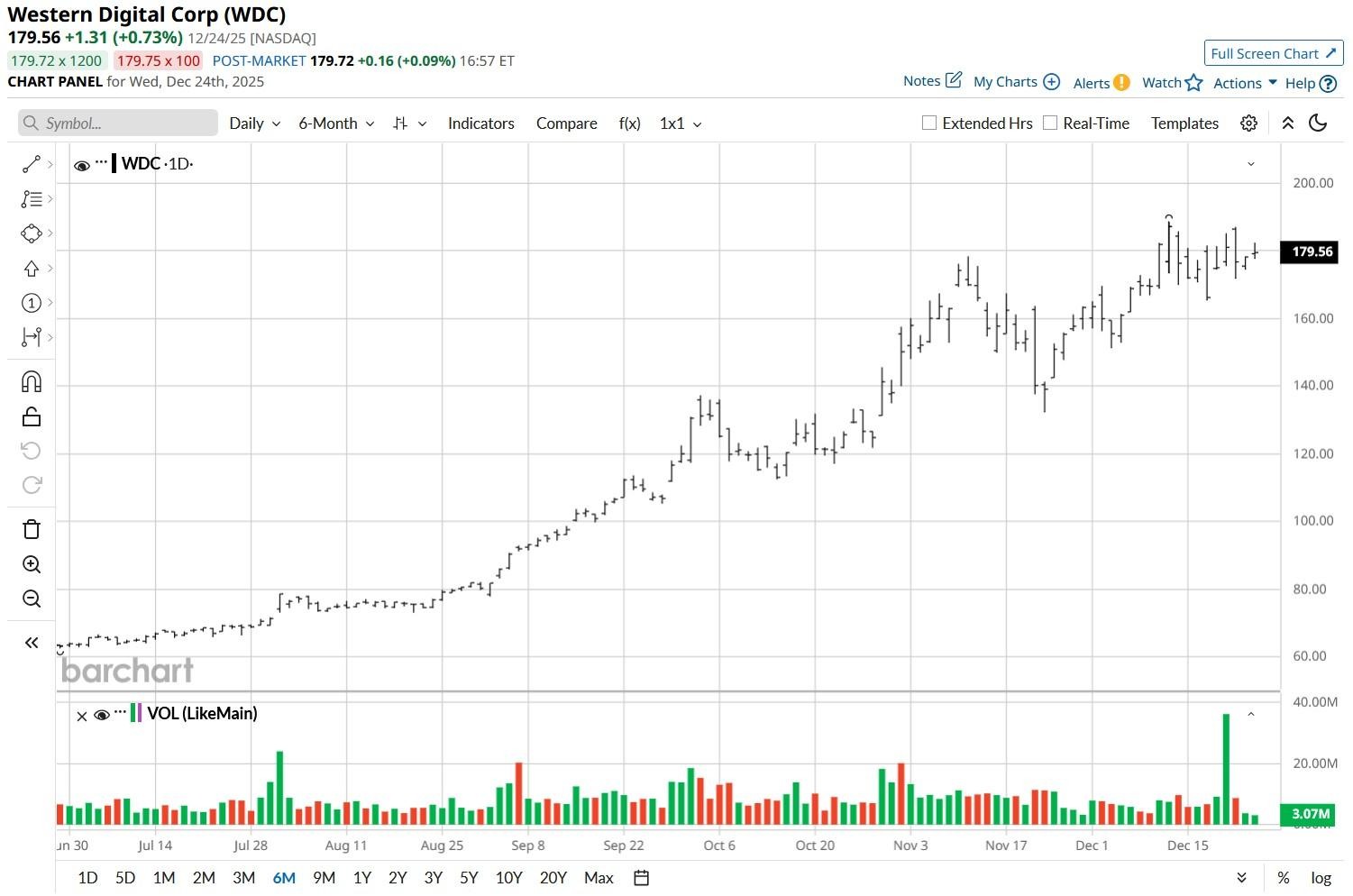Finally, WDC has its 100-day relative strength index (RSI) set at 62 currently, indicating the bullish momentum is far from exhaustion heading into 2026.